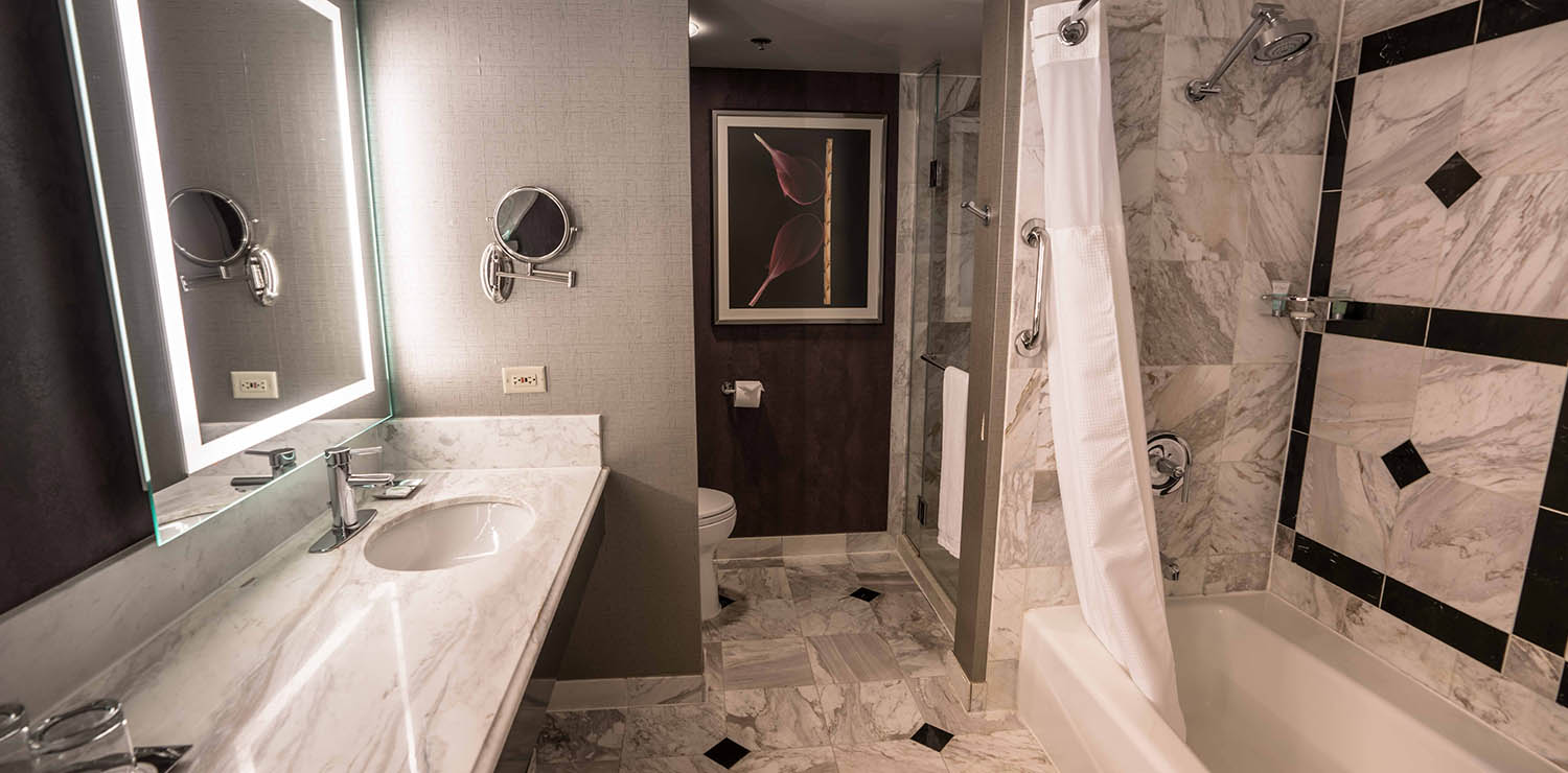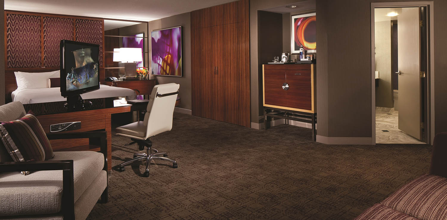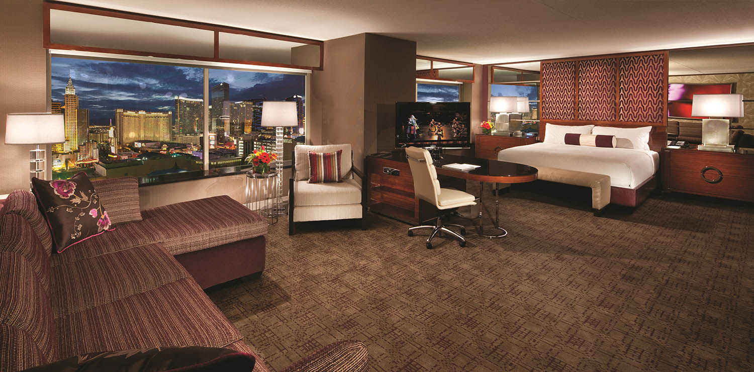 Vegas never stops, but when it’s time to reset, do it in style. The newly remodeled MGM King room is the perfect retreat, blending sleek, modern furnishings with a rejuvenating king bed. Whether you're gearing up for the night ahead or winding down from an unforgettable one, this room is built for ultimate relaxation and recharging in the heart of the action.
