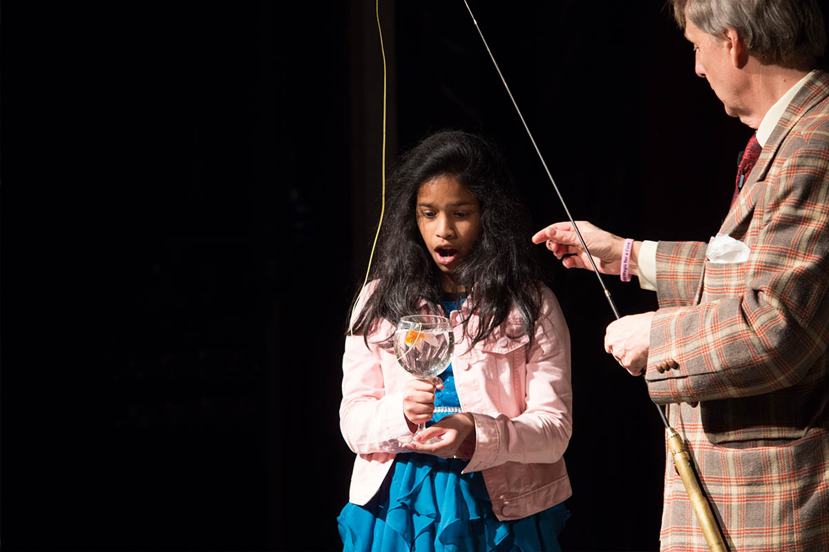 In his 70 minute show, Mac captivates audiences as he casts out a fishing line over their heads and catches live goldfish out of mid-air, does amazing stunts with a grizzly bear and his pet guinea pig “Colonel Sanders,” performs amazing sleight-of-hand, makes his head completely disappear in a paper bag, and renders himself invisible, all while remaining unbelievably funny.